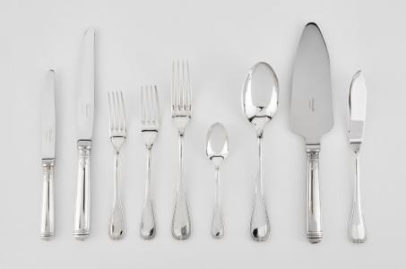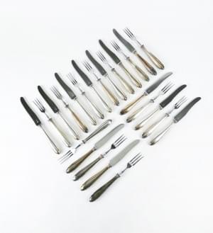 Jezler, argent, 12 fourchettes et 12 couteaux à dessert