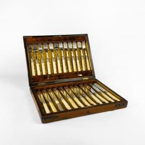 Grande-Bretagne, métal argenté et ivoire, dans un écrin en bois...