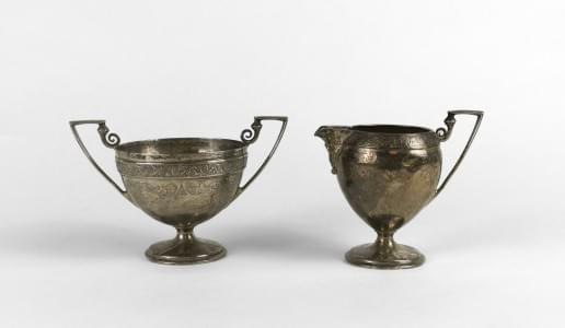 4510. Sucrier et 3 tasses à décor de guirlandes et fleurs