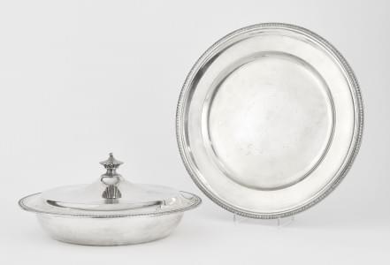 4710. Légumier et plat ronds néoclassiques à bordure de feuilles d'eau