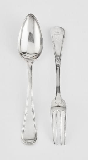 4714. 12 fourchettes et 12 cuillères, armoiries famille de Planta