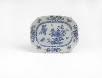 Porcelaine émaillée bleu blanc à décor de fleurs, 35x27 cm