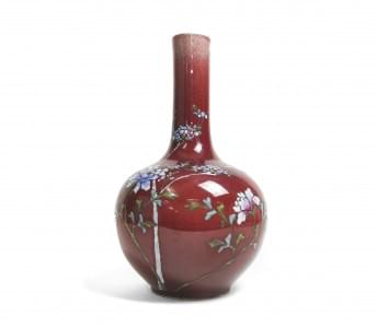 Porcelaine émaillée rouge à décor de fleurs, H 37 cm