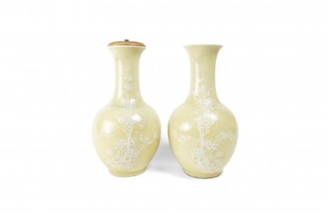 Porcelaine émaillée jaune à décor de branches de prunus, H 30,5...