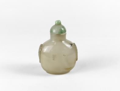 Porcelaine émaillée beige, bleu et marron, H 9,5 cm