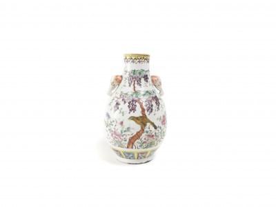 Porcelaine émaillée polychrome à décor de fleurs et oiseaux, H 2...