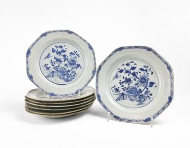 4797. Huit assiettes octogonales, Chine, Compagnie des Indes, XVIIIe s
