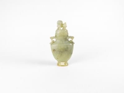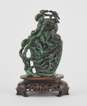 Bois, pierres dures et ivoire à décor de personnages dans un jar...