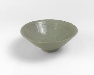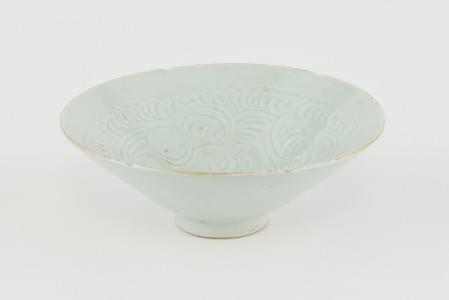 Porcelaine émaillée monochrome à décor de vagues incisées sous c...