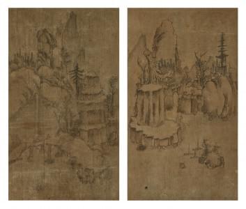Deux paysages, deux encres sur soie, 51x30 cm.