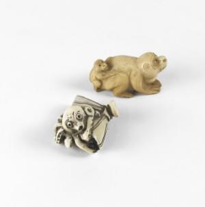 4928. Deux netsukes, l'un formé de deux singes, l'autre d'un poulpe ac...