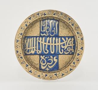 Céramique émaillée brun et bleu à décor de calligraphies et rinc...