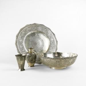 4972. Deux vases, un plat et une coupe sur pied, Iran, milieu XXe s