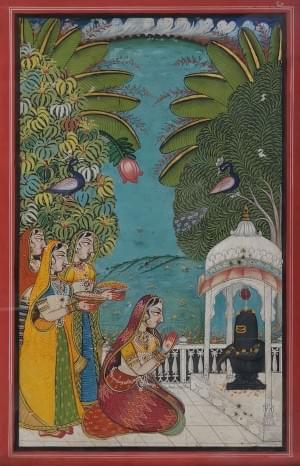4985. Divinité indienne sous un arbre, Inde, fin XIXe s