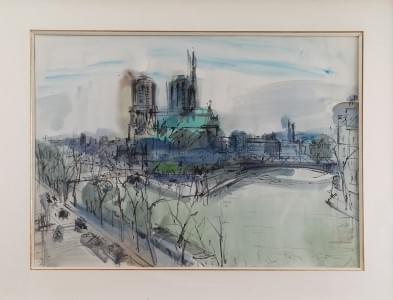 Place de la Concorde et Notre-Dame, deux aquarelles, signées, 46...