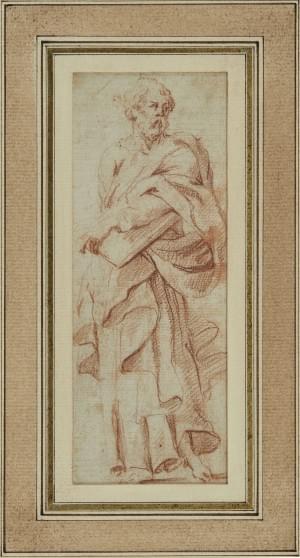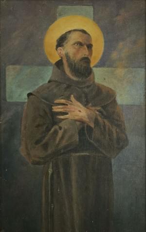 Saint personnage, huile sur toile marouflée sur pavatex, signatu...