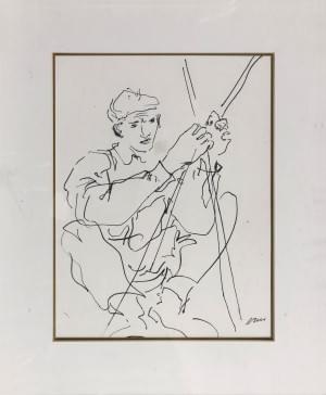 Pêcheur, encre sur papier, signée, 29x22 cm