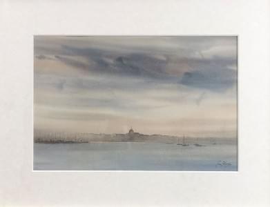 Vue portuaire, crayon et aquarelle sur papier, signé, 21,5x15 cm