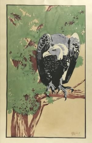 Paire de rapaces, pochoirs, signée E. Rieder, 54x30 cm