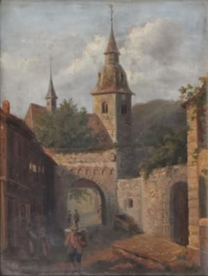 Porte de ville, huile sur toile, attribuée au dos à Johann Stähl...
