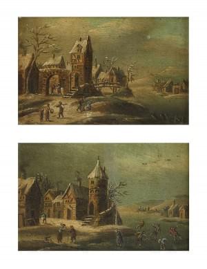 Paysage d'hiver, huile sur toile, signée, 32x45 cm