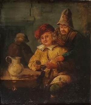 Buveurs dans une taverne, huile sur panneau, 22x20 cm