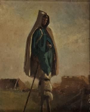 Berger landais sur échasses, huile sur toile, 24x20 cm