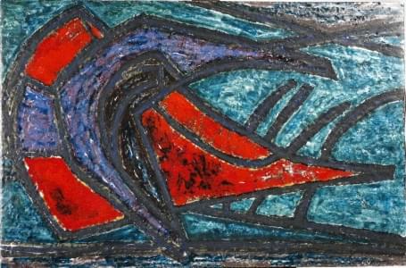 Scène de vie sous-marine, huile sur pavatex, 47x37 cm