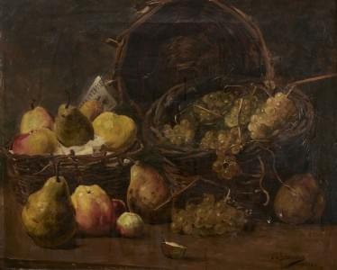 Nature morte à la coupe de fruits, huile sur carton, signée et d...