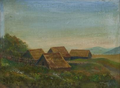 Chaumières, huile sur toile marouflée sur panneau, 24x32 cm