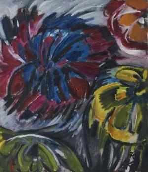 Abstraction florale, huile sur toile, monogrammée et datée 70, 8...