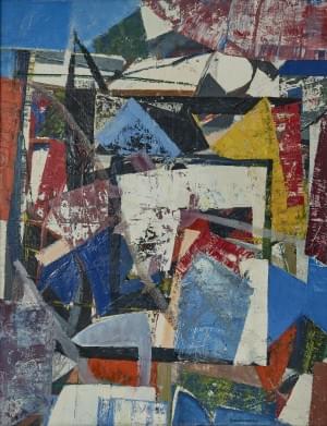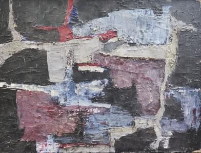 Composition, huile sur toile, signée et datée 1959, 101x81 cm.