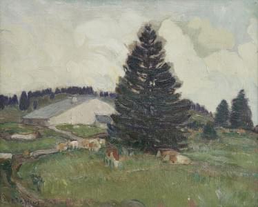 Le Chandon près de Morat, huile sur carton, monogrammée, 39x56 c...