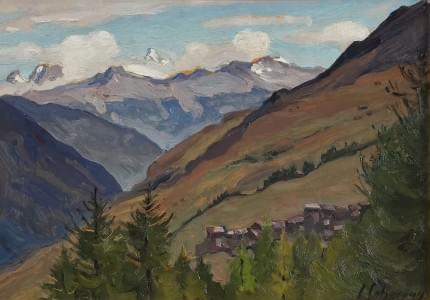 Paysage des Alpes, huile sur carton, signée, 28x38 cm