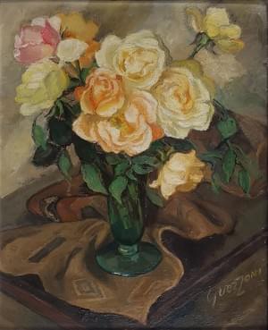 Bouquet de roses dans un vase en verre, huile sur carton, 41x33...