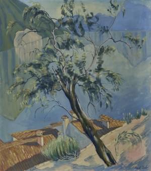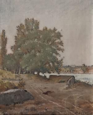 Saule devant le Lac Majeur de Lugano, huile sur toile, 89x78,5 c...