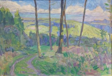 Chemin en sous-bois, huile sur carton, 36x56 cm