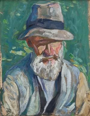 Portrait d'homme barbu, huile sur toile marouflée sur carton, mo...