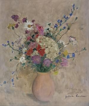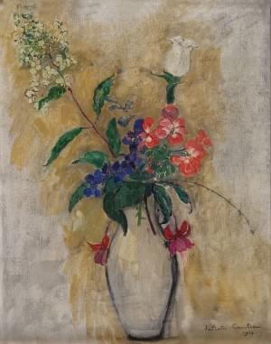 Bouquet de fleurs, huile sur toile, signée et datée, 46x38 cm.