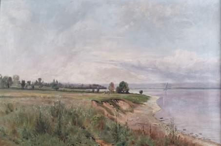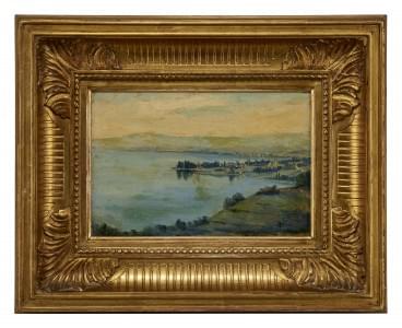 Le Léman vu de la côte française, huile sur toile, datée XII 98,...