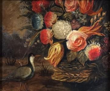 Nature morte à l'huîtrier eurasien, huile sur toile, 38x50 cm
