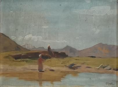 Paysage avec pêcheur, huile sur toile, signée, 40x33 cm