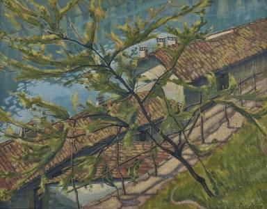 Vue sur les toits d'un village tessinois, huile sur toile, 68x87...