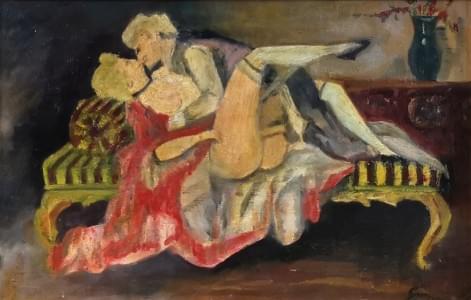 Nu féminin, huile sur toile, signée Hermanuz, 50x60 cm