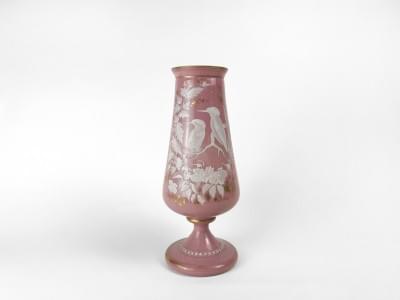 Opaline rose à décor émaillé de colibris, H 36 cm