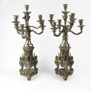 3730. Paire de candélabres à décor de mascarons, fin XIXe s