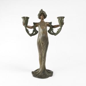 Femme drapée formant lampe à deux bras de lumières, régule à pat...
