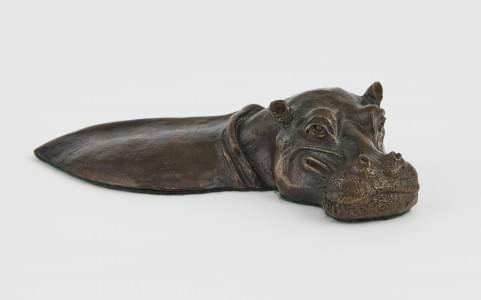 Hippopotame dans l'eau, bronze à patine brune, L 19 cm.
