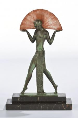 Sculpture lumineuse Espana, régule à patine verte, verre moulé p...