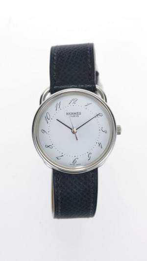 Cadran blanc, chiffres arabes italiques et aiguilles noirs, brac...